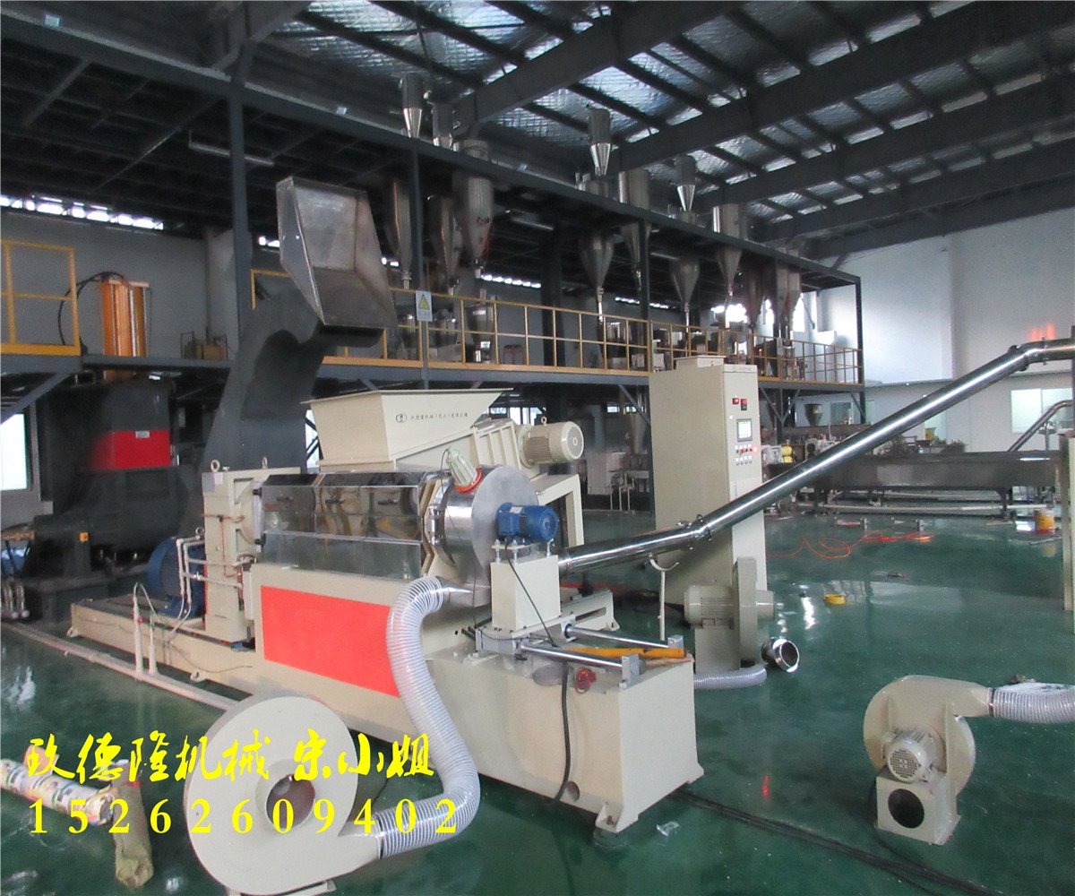 2)PP碳酸钙高填充造粒机电气控制柜控制包括温控系统、驱动系统、联锁联控系统; 机头设有熔体压力及熔体温度显示,其中熔压与主机联锁,实现超压保护,主机温控系统采用温控模块,有双通道、PID参数自整定及加热器断路指示等功能;