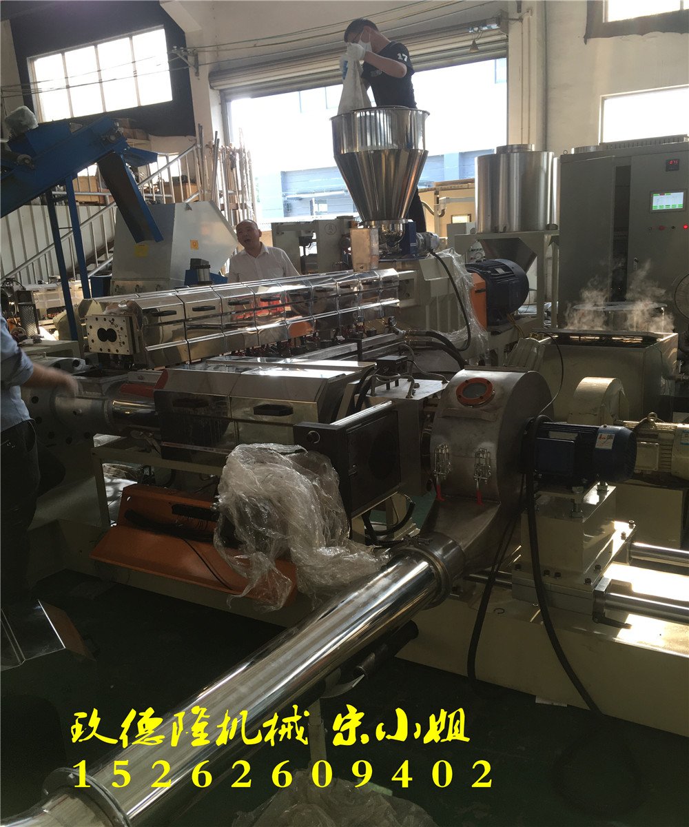 8. 搅拌槽及加压盖 : 由特殊合金钢铸造,经精密加工、耐磨处理后镀铬制成。 9.机械重量 : 碳酸钙PP造粒机15000KG